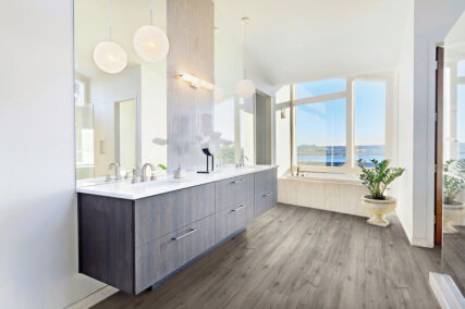 Luxury vinyl combines the look and feel of nature’s finest materials with advanced technology to create a stable surface. This flooring offers beneficial features such as water and stain resistance, enhanced durability for long-term use and cost effectiveness. Vinyl is not only a thermal insulator, reducing your home energy costs but it is also a sound insulator. Luxury vinyl products are fast and easy to install without the added difficulty of pattern matching.